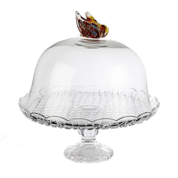 Büyük Boy Amber Kelebek Kapaklı Ayaklı Cam Kek Standı 31x31 cm - Pasta ve Cupcake Sunumu (P281.800361)