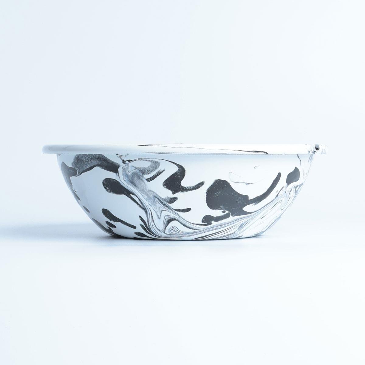 Emayra emaye salata kasesi, ebruli desenli, siyah ve beyaz renklerde