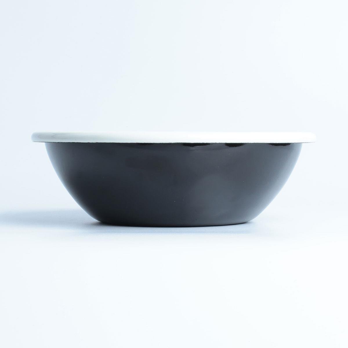 siyah emaye kase, iç ve dış görünüm, emaye salata kasesi