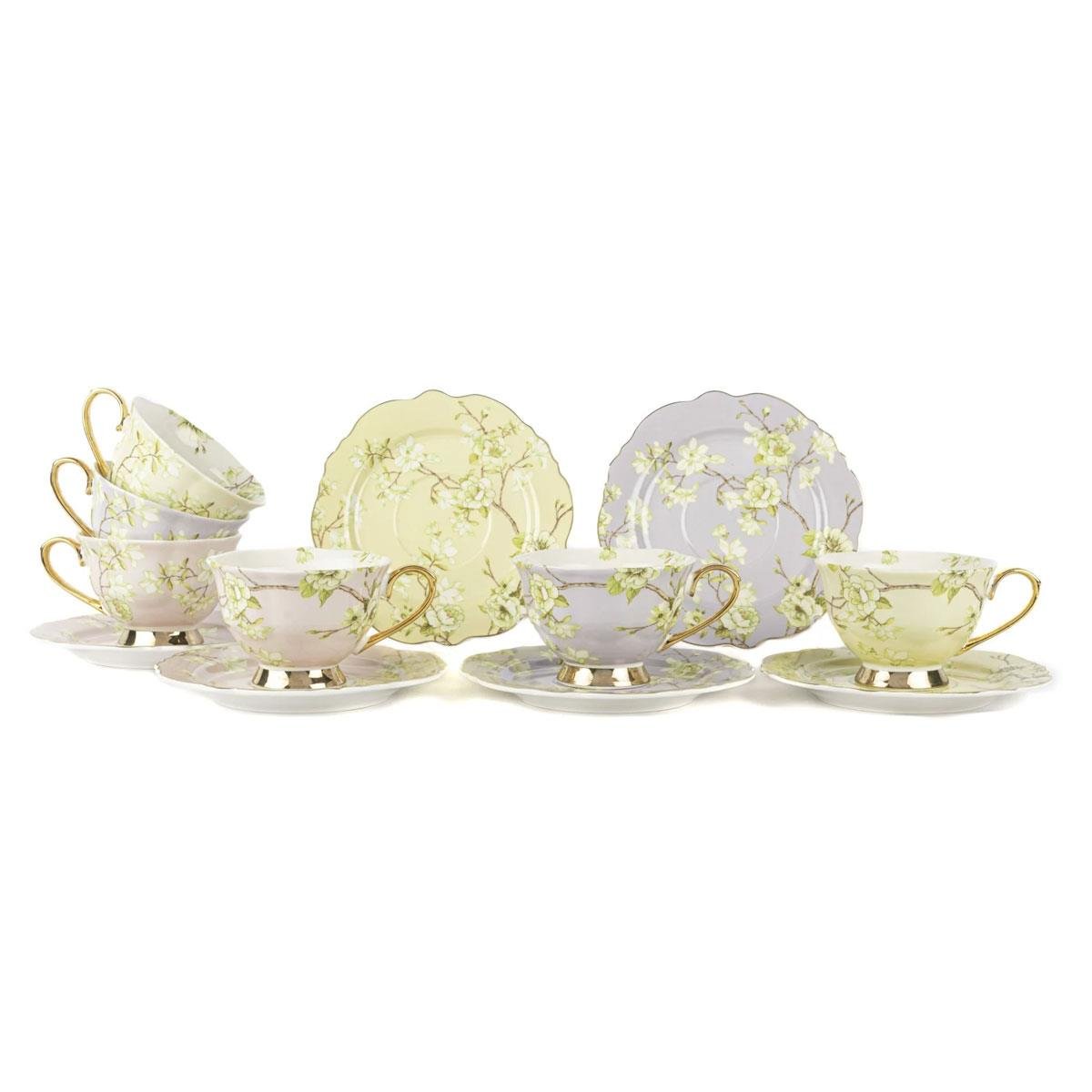 Mikasa Moor Vernal Porselen 6 Kişilik Çiçekli Çay Fincanı Seti, Beyaz Arka Plan